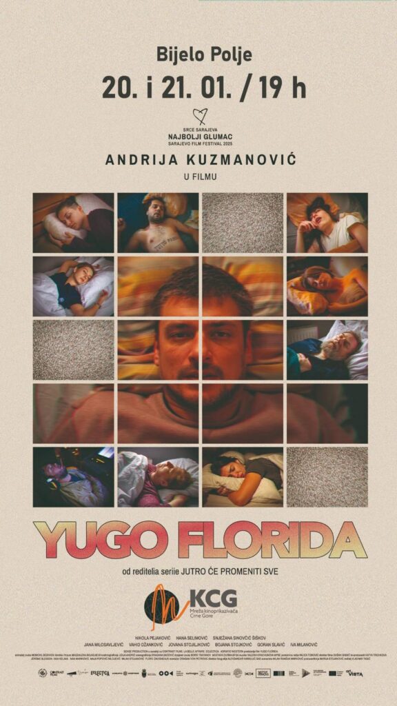 Projekcija filma realizuje se u saradnji bjelopoljskog Centra za kulturu sa Mrežom kinoprikazivača Crne Gore.”Jugo Florida” donosi toplu, emotivnu priču prožetu suptilnim humorom, fokusiranu na generaciju koja je stasavala tokom devedesetih, a danas se suočava sa svijetom u kojem su bliskost, empatija i razumijevanje sve rjeđi. U svom debitantskom filmu, Tagić pažljivo istražuje generacijske odnose, tišine koje razdvajaju ljude i emocije koje često ostaju neizrečene.