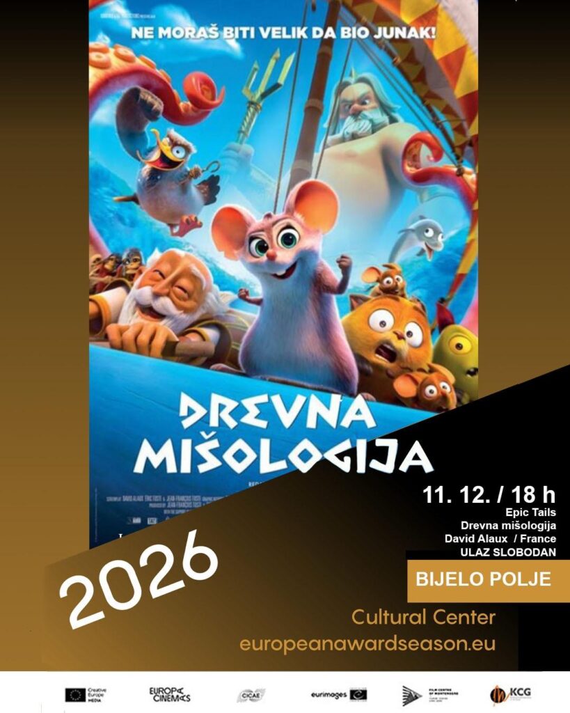 Mreža kinoprikazivača Crne Gore, u saradnji sa Evropskom filmskom akademijom (EFA), organizuje jedinstvenu manifestaciju European Award Season 2026, posvećenu raznolikosti i bogatstvu evropske kinematografije.Od 18. novembra 2025. do 17. januara 2026., širom Evrope, biće prikazan izbor savremenih i klasičnih evropskih filmova, sa ciljem da podstakne publiku na dublje interesovanje i veću posjećenost ovakvih ostvarenja.Poseban fokus ove godine je na najmlađoj publici. Pripremljen je bogat i pažljivo odabran filmski program za djecu i mlade, koji će podstaći njihovu maštu, razviti ljubav prema filmu i pružiti im nezaboravne trenutke zabave.”Drevna Mišologija” donosi nezaboravno putovanje kroz klasičnu grčku mitologiju na potpuno nov način. Mlada i pametna mišica Pati prelazi granice svoje hrabrosti kako bi postala prava heroina. Na zabavan i duhovit način film djeci poručuje da je važno vjerovati u sebe, truditi se uprkos tome što drugi kažu i biti svoj.