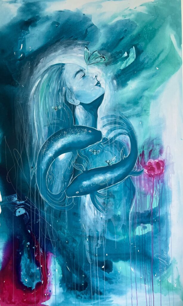 Zatvorene oči ženskih figura u djelima simbolizuju povlačenje iz buke spoljašnjeg svijeta i započinjanje unutrašnjeg putovanja. Figure riba predstavljaju sreću, tok života i nevidljiva čuda koja nas prate.