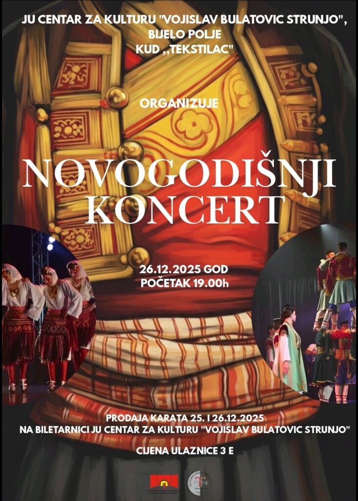 Kulturno-umjetničko društvo ”Tekstilac’” će tradicionalni novogodišnji koncert održati u petak, 26. decembra, u velikoj sali JU Centar za kulturu ”Vojislav Bulatović Strunjo” sa početkom u 19.00 časova.